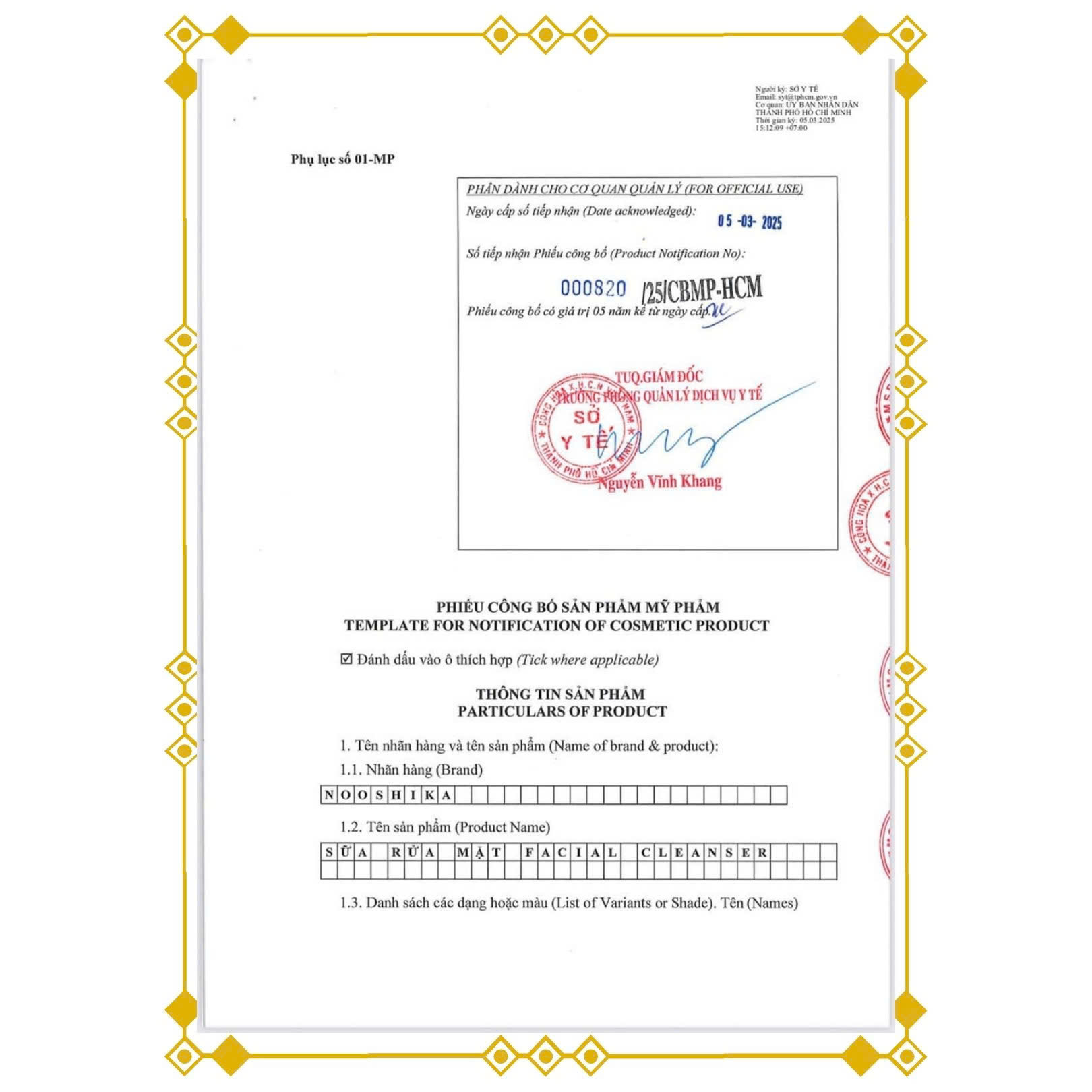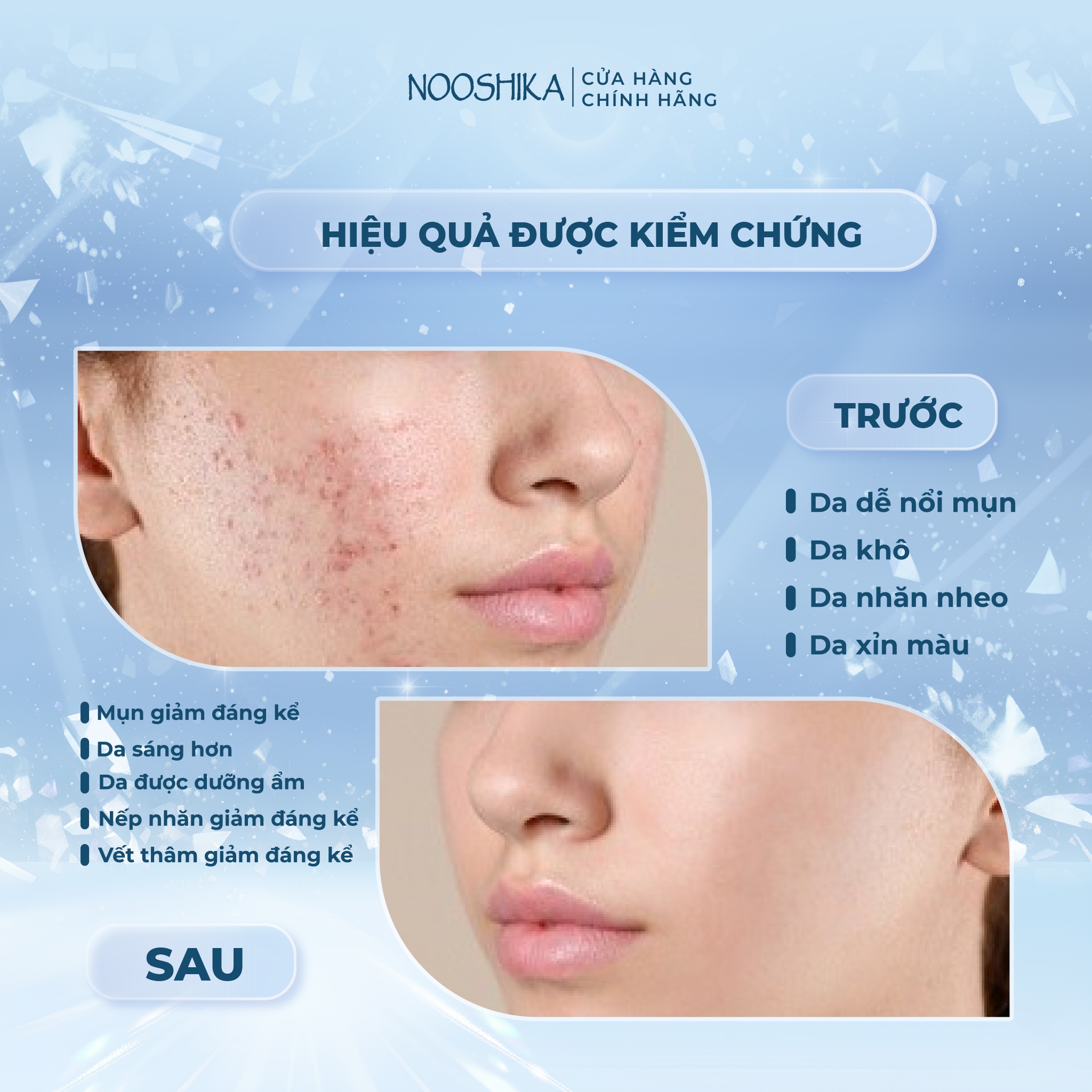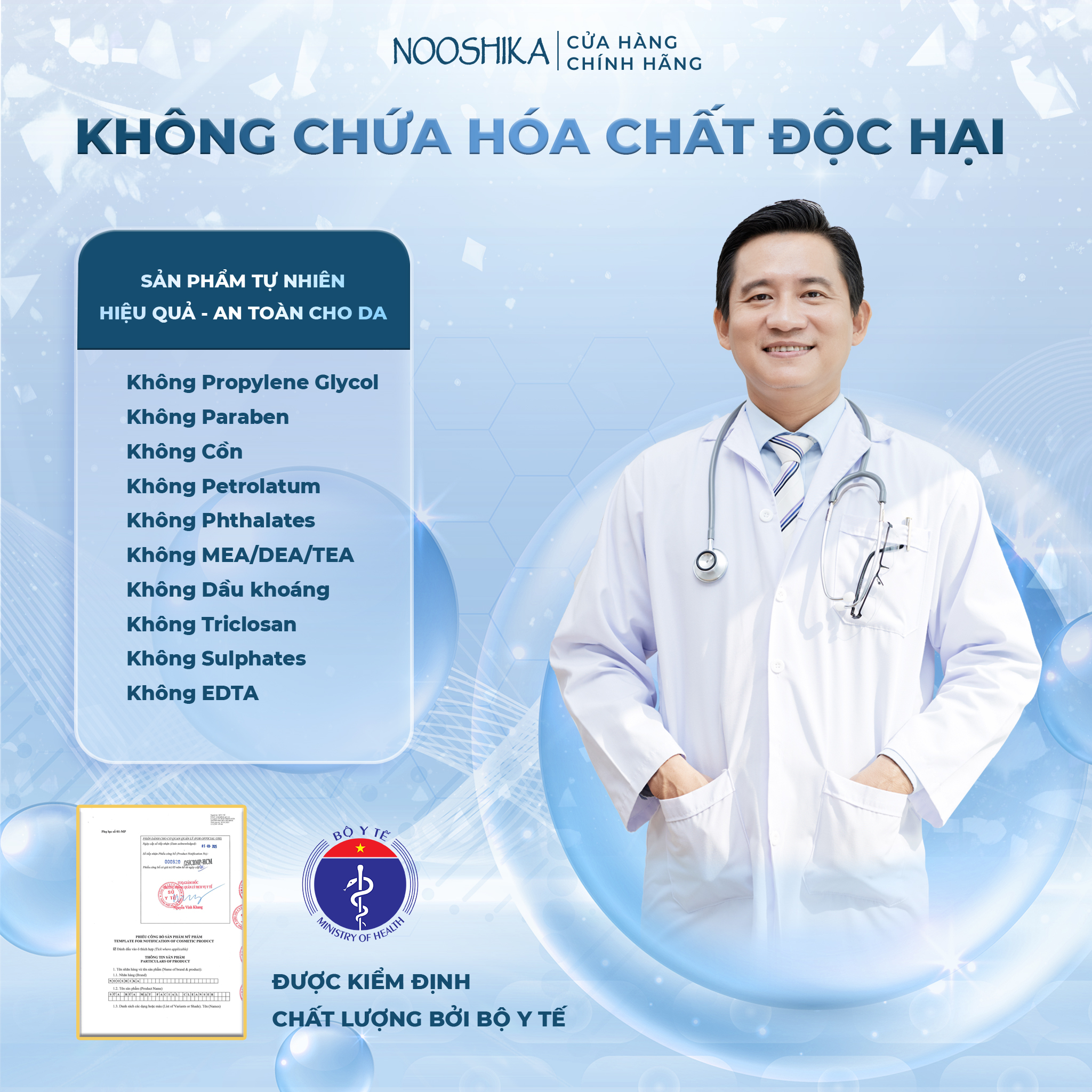 Sữa rửa mặt NOOSHIKA không chứa hóa chất độc hại, giúp bảo vệ da khỏi các tác nhân gây hại từ môi trường bên ngoài. Đặc biệt, sản phẩm còn kiểm soát mụn trứng cá, giúp giảm thiểu sự xuất hiện của mụn trứng cá trên da.