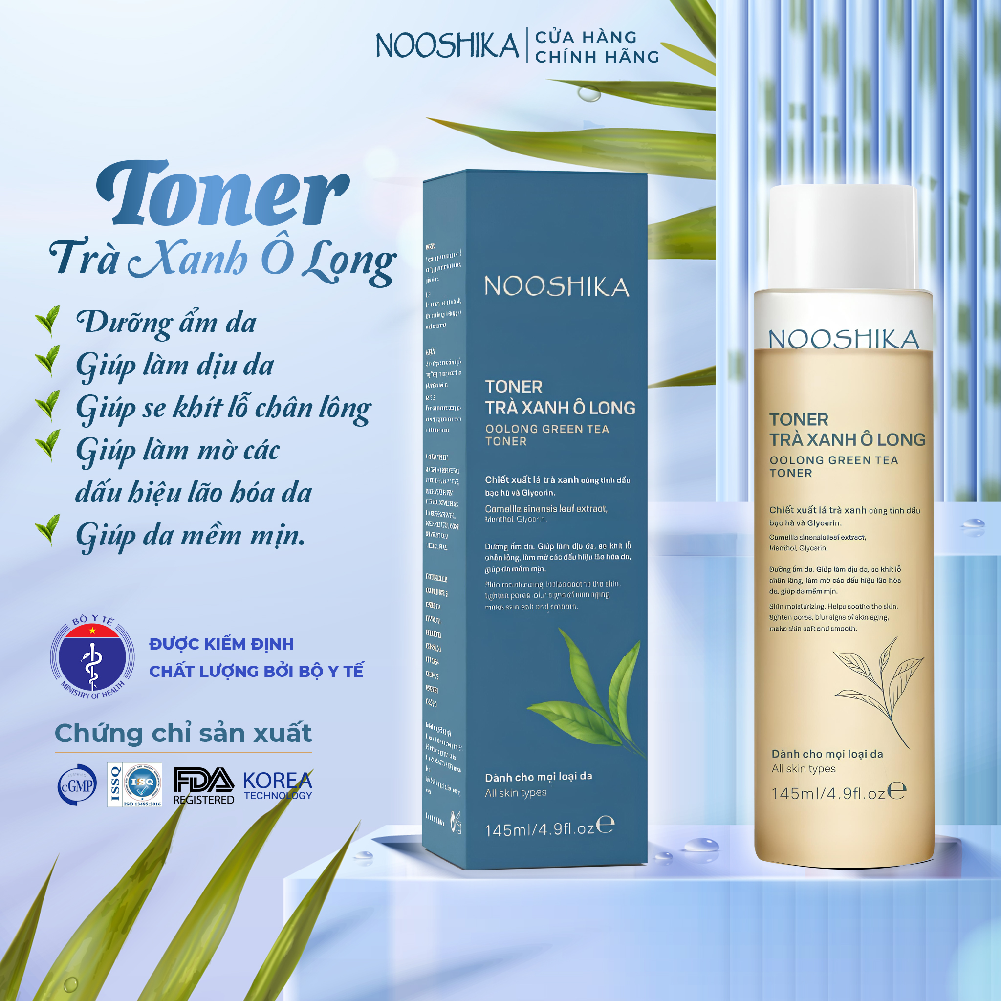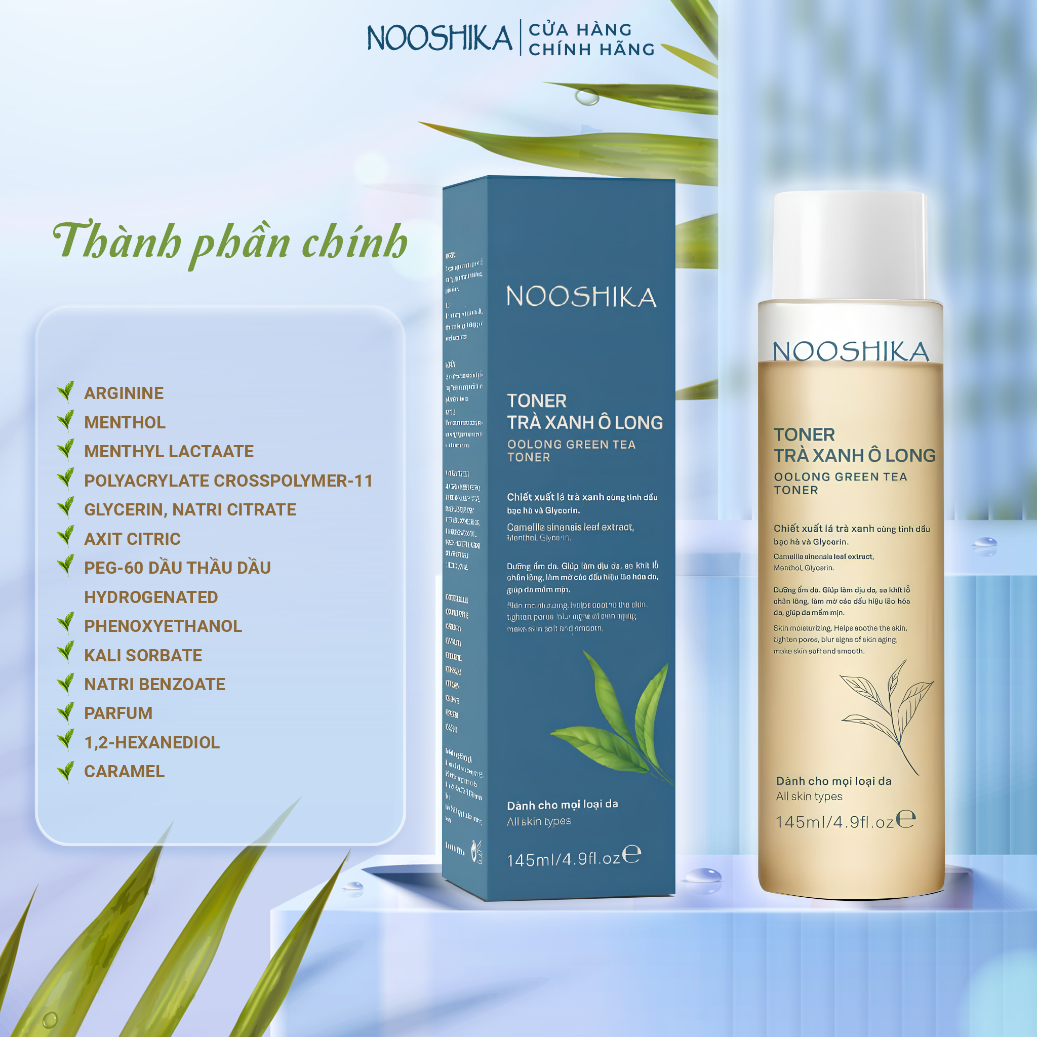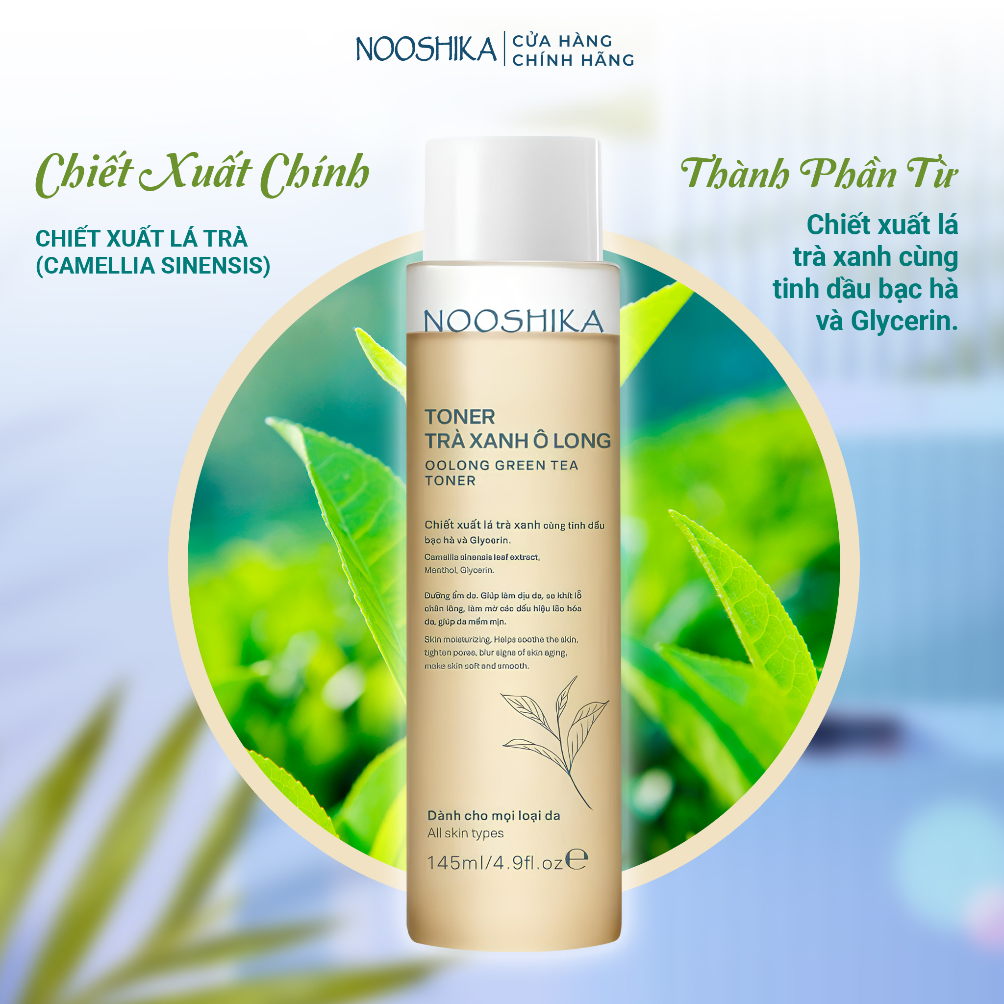 Toner Trà xanh Ô Long NOOSHIKA có công thức tối giản với 10% chiết xuất nước trà oolong , giúp cấp ẩm tức thì, chống oxy hóa, làm chậm quá trình lão hóa, giúp da đàn hồi trẻ trung.